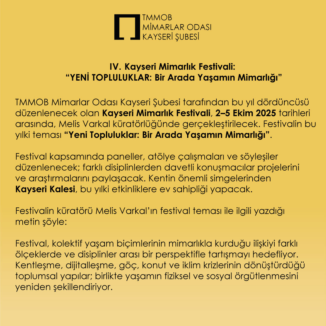 IV. KAYSERİ MİMARLIK FESTİVALİ KONUŞMACILAR