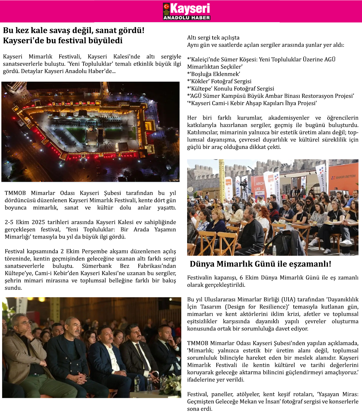 2-5 Ekim 2025 tarihleri arasında Kayseri Kalesi ev sahipliğinde gerçekleşen festival, ‘Yeni Topluluklar: Bir Arada Yaşamın Mimarlığı’ temasıyla bu yıl da büyük ilgi gördü.