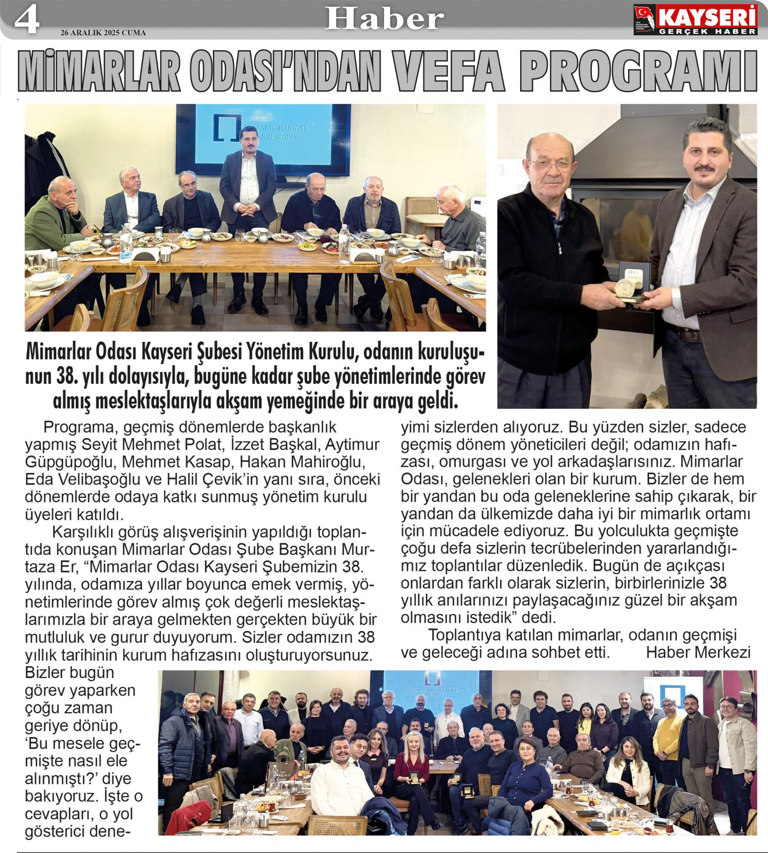 Kuruluşumuzun Otuz Sekizinci Yılına Özel Vefa Programı