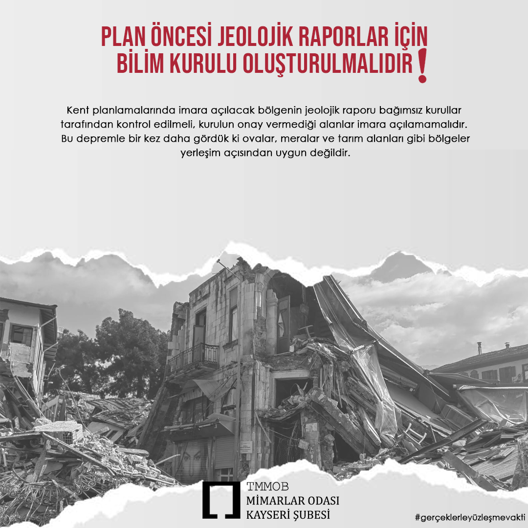 edilmeli, kurulun onay vermediği alanlar imara açılamamalıdır. Bu depremle bir